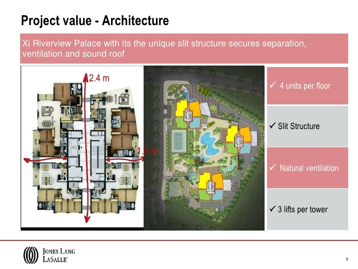 Kiến trúc: Căn hộ cao cấp XI Riverview Palace chú trọng thiết kế đường nét, bề mặt tòa nhà phù hợp với môi trường thiên nhiên xung quanh. Mặt trước tòa nhà XI Riverview Palace được thiết kế hướng ra toàn cảnh bờ sông.Thiết kế đường nét tòa nhà vừa hài hòa với thiên nhiên vùa cách âm tiếng ồn với các căn hộ bên cạnh.