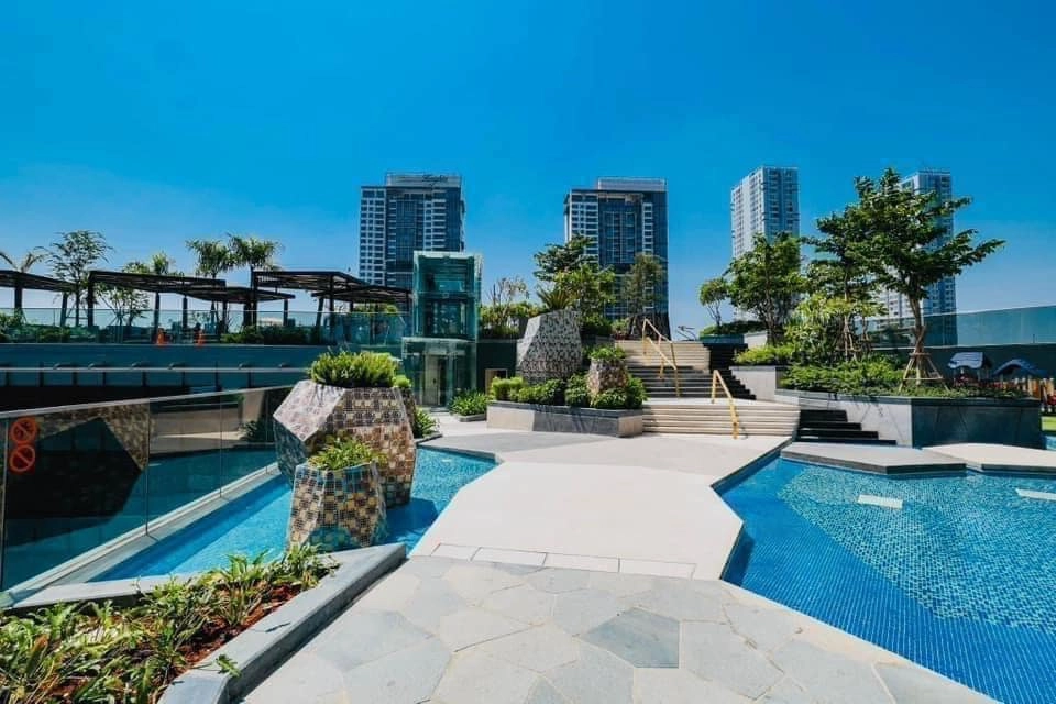 Cư dân còn được hưởng các tiện ích đẳng cấp như hồ bơi, phòng gym, khu vui chơi trẻ em, và khu BBQ ngoài trời.