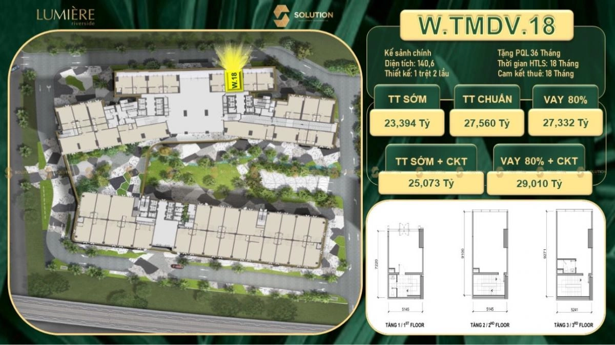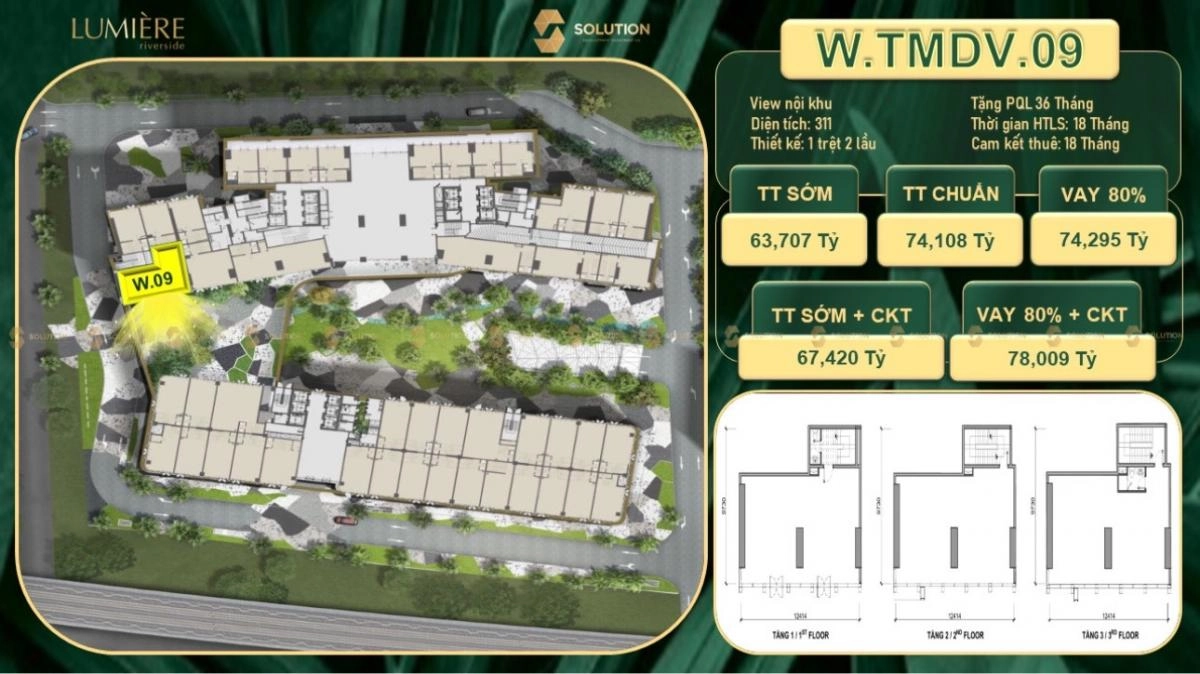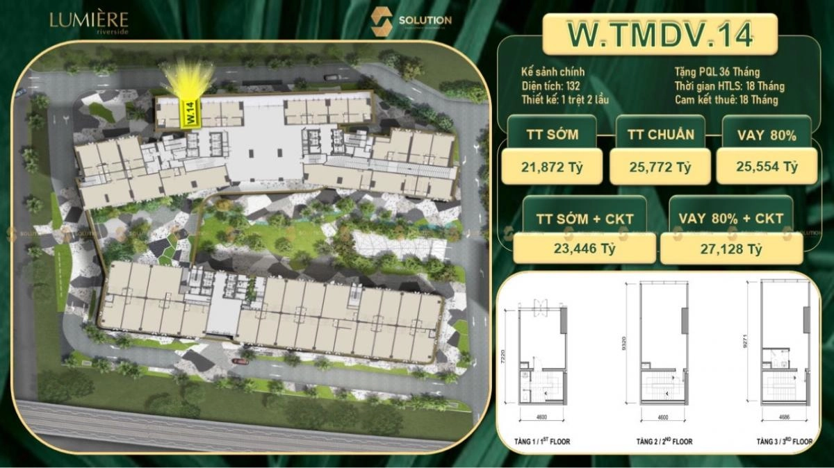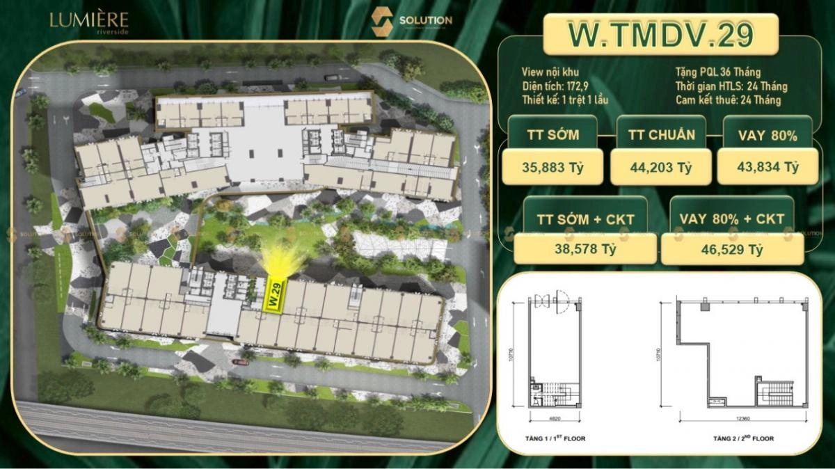 với diện tích 172m2 1 trệt 1 lầu căn shop phù hợp đối với việc mở quán cafe, trà sữa hoặc nhà hàng là một căn shop đáng sở hữu tại dự án Lumiere Riverside.