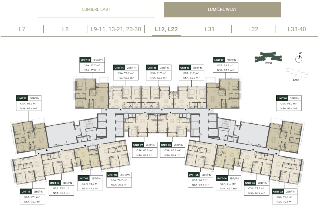 Mặt bằng Lumiere Riverside Toà West tầng 12, 22