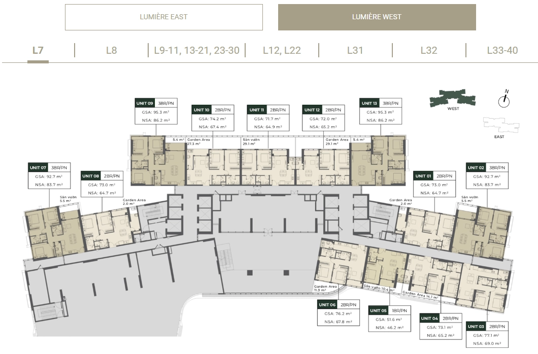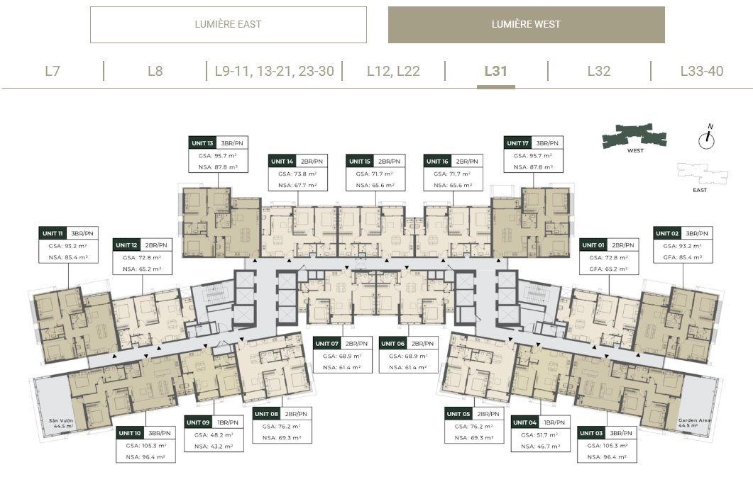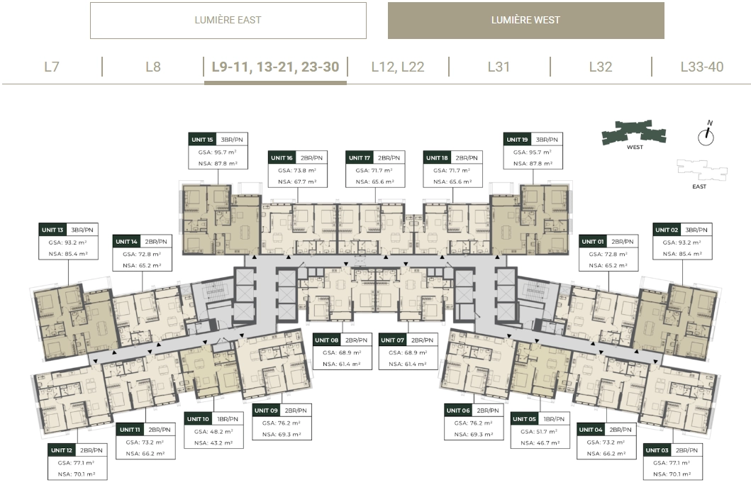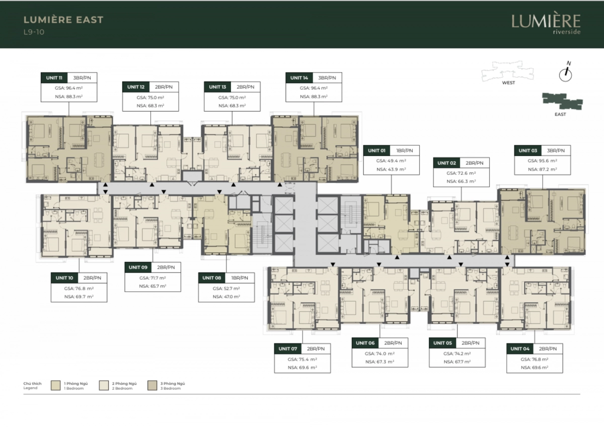 Mặt bằng Lumiere Toà East Tầng 9-10