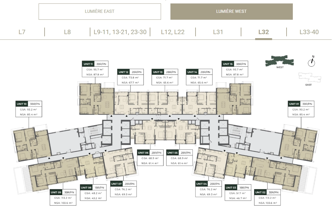 Mặt bằng Lumiere Riverside Toà West tầng 32
