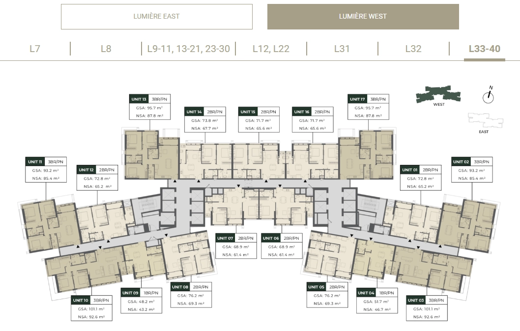 Mặt bằng Lumiere Riverside toà West tầng 33-40